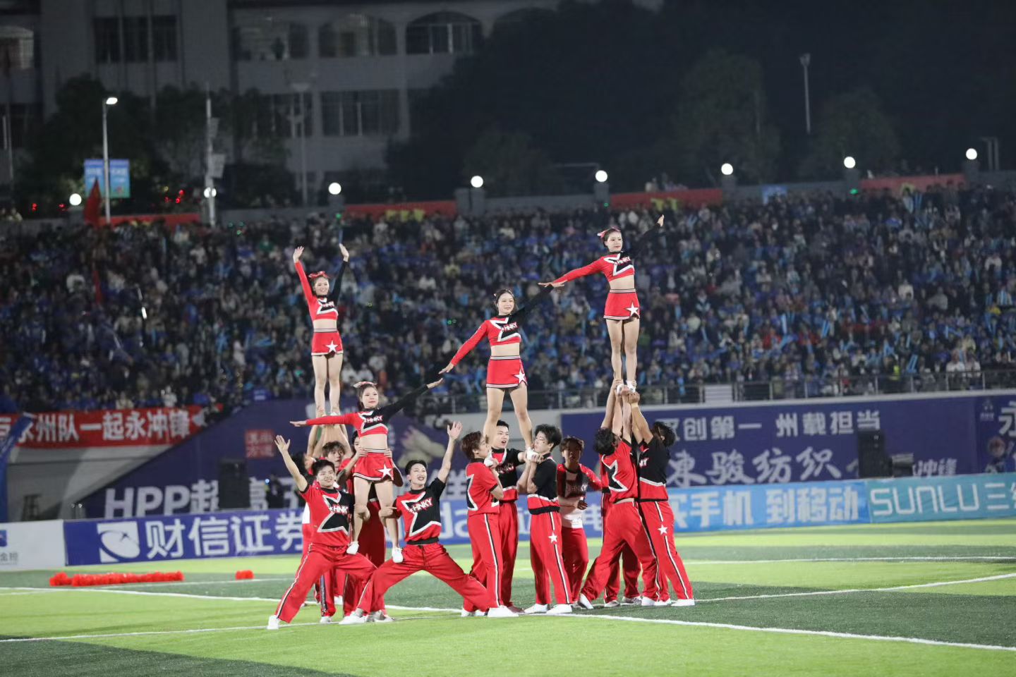 本网讯(通讯员 盘华)10月26日,第七轮湖南省足球超级联赛永州主场对阵长沙,开场前在赛场中央激情上演了一场视觉盛宴,我院盘华、郑华艳和美术与艺术设计学院李国碧老师带领的200多名啦啦操队员用她们充满活力与激情的表演,瞬间点燃了现场球迷的热情。