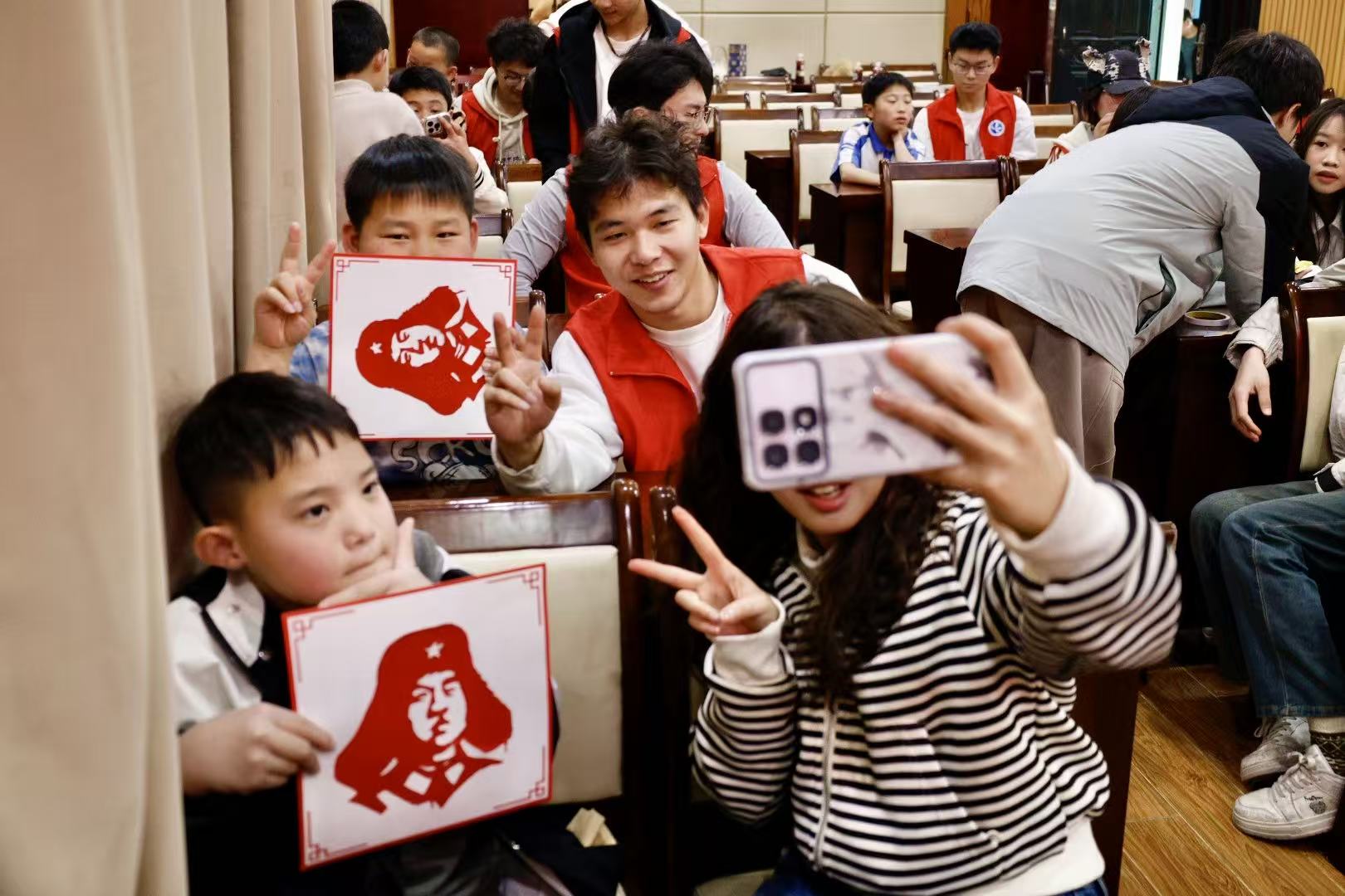 本网讯(通讯员 唐天田)春风送暖,大爱传情。近日,我校美术与艺术设计学院“向阳花”志愿队走进永州市特殊学校,开展“非遗剪纸传薪火 红绢长卷颂雷锋”主题志愿活动,为特殊儿童送上一堂兼具厚度与温度的沉浸式艺术课,让雷锋精神在无声世界绽放光芒。